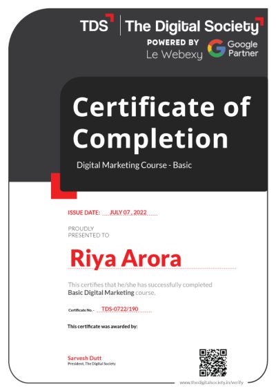 By the end of this extensive digital marketing course, You will be able to crack the Google Ad Fundamental Certification and receive a certificate of completion from The Digital Society. Additionally, you will earn recognition from top digital marketing agencies and brands